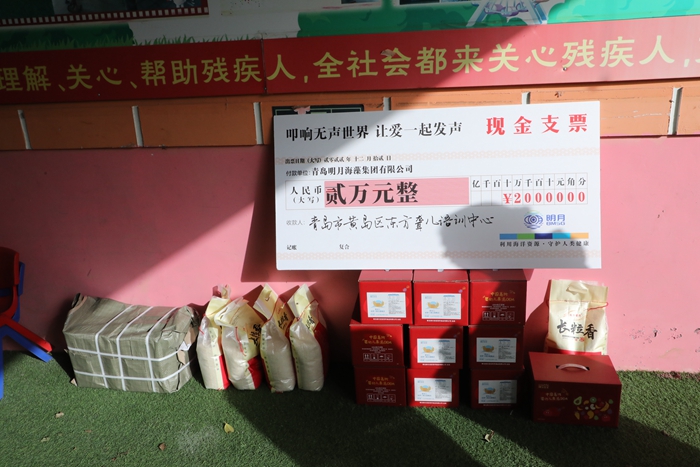 為大力弘揚人道主義精神,倡導助殘扶殘的社會風尚,營造文明進步的社會環境,12月13日,青島明月海藻集團走進青島西海岸新區東方聾兒語訓中心,開展了以“溫暖無聲世界,傳遞愛與希望”為主題的關愛“無聲天使”慰問活動。青島明月海藻集團向聾兒語訓中心捐助了2萬元慰問金以及營養果泥、大米等慰問品。